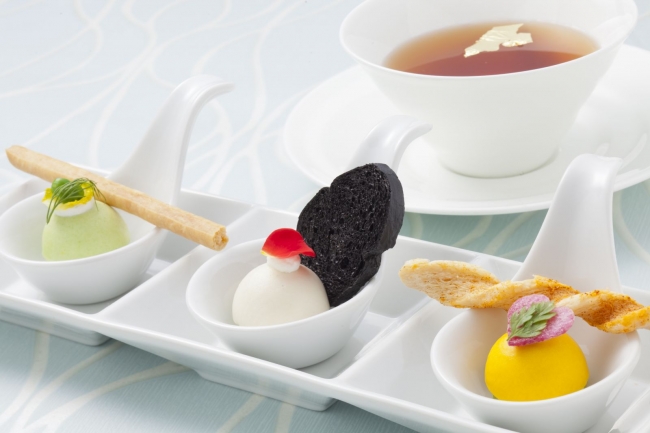 前菜には3種の野菜ムースと3種のクロッカン、3段のお弁当箱にはそれぞれ3種の肉料理に3種の魚料理、そして8種のスイーツが色鮮やかに詰めこまれています。沖縄ならではの食材を取り入れながら、見た目も愛らしく彩り豊かなフレンチ仕立てのお弁当がお楽しみいただけます。