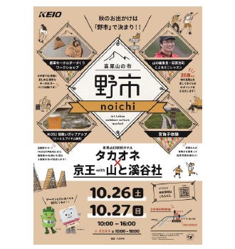 京王電鉄株式会社(本社:東京都多摩市、代表取締役社長:都村 智史、以下「京王電鉄」)は、株式会社山と溪谷社(本社:東京都千代田区、代表取締役社長:二宮宏文、以下「山と溪谷社」)および株式会社R.project(本社:千葉県安房郡鋸南町、代表取締役:丹埜 倫)と共同で、10月26日(土)・27日(日)に京王高尾線 高尾山口駅前広場、同駅前ホテル「タカオネ」で「高尾山の市“野市”」を開催します。