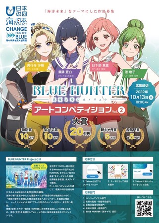 昨年49カ国691件の応募があった『BLUE HUNTER Art Competition』をバージョンアップし、グローバルで第二弾を開催中。応募締め切りは2022年10月13日。「未来の海洋を表現する独創的な投稿作品」に対して、総額65万円の賞金が贈られます。今回はイラストのみではなく、3DCG作品の応募も受け付け”3DCG賞”を設けております。 12月にアワードイベントを開催し、受賞作品を表彰いたします。