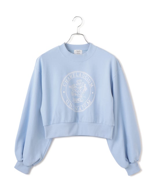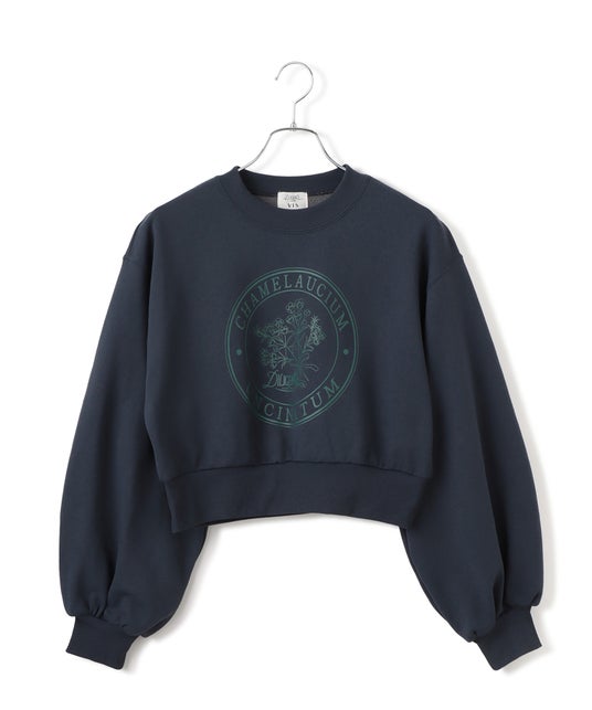 可愛らしさのあるワックスフラワーのイラストを使った、オリジナルのロゴ入りスウェット。