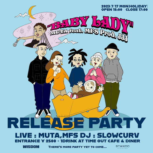“出会いと旅立ちを祝福するウタ”が世界中のファミリーの元に届くことを願い、7/17(月・祝)にTIME OUT CAFE & DINERにて開催される、MUTAとMFSによる「BABY LADY RELEASE PARTY」のオフィシャルグッズが公開された。