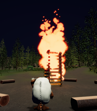 巨大キャンプファイヤーを前に、リアルタイムでユーザーと交流しながら、ワールドを一緒に楽しみます。