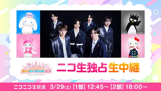 サンリオピューロランドで開催中の「推し活ピューロランド」イベント内で、3月29日(土)にエンターテイメントホールにて開催される「推し活ピューロランドフェス×Lienel」昼夜2部公演をニコニコ生放送で生中継いたします。