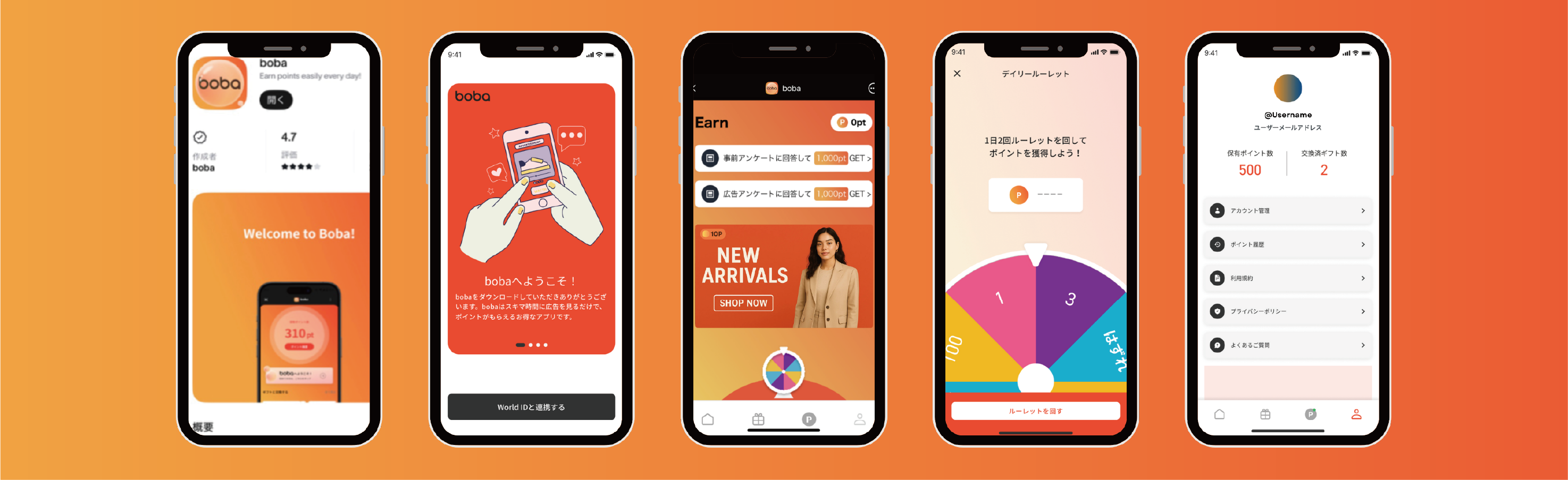 - ミニアプリ「boba」の利用開始: 「World App」内のミニアプリ「boba」を起動し、World IDを連携。アカウントを新規登録します。
