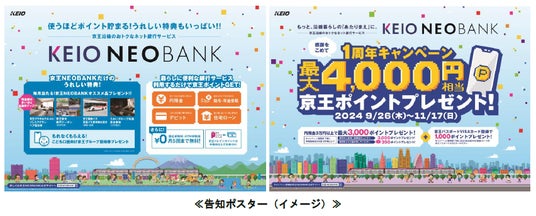 さらに、開業1周年を記念して、口座開設や預金残高などの条件達成で京王ポイントを最大4,000ポイントプレゼントする「1周年キャンペーン」を9月26日(木)から11月17日(日)まで実施します。