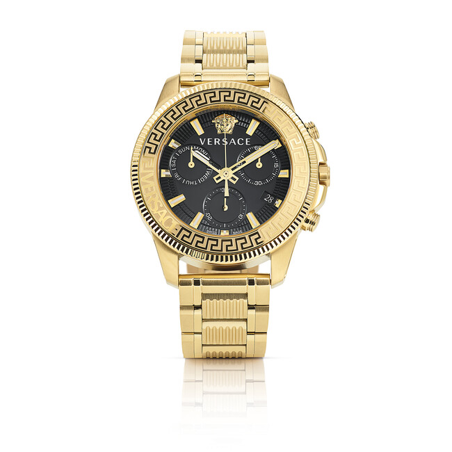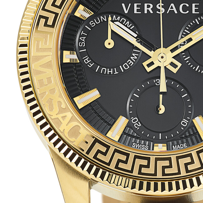 VERSACEらしいゴールド×ブラックの華やかなクロノグラフ。