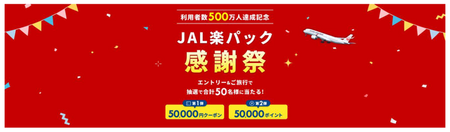 名称:利用者500万人達成記念 JAL楽パック感謝祭