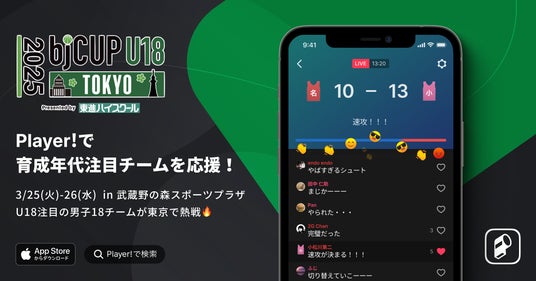 スポーツエンターテイメントアプリ「Player!」を運営するスポーツスタートアップ企業 ookami は一般社団法人ジャパンバスケットボールアカデミーが2025年3月25日~26日に東京都で主催する2025 bjカップ U18 in TOKYO Presented by 東進ハイスクールにおいて日程表やトーナメント、リーグ戦などのPlayer!独自のウィジェットを活用したデジタル連携を行います。