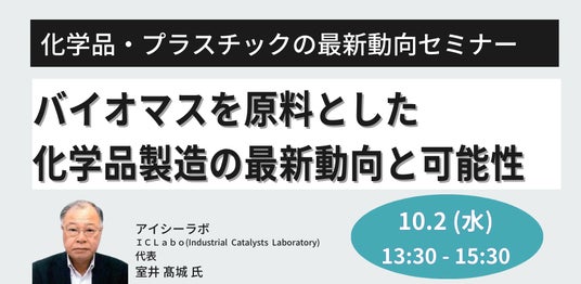 JPI(日本計画研究所)は、アイシーラボ ICLabo(Industrial Catalysts Laboratory) 代表 室井 高城 氏を招聘し、バイオマスを原料とした化学品製造の最新動向と可能性について詳説いただくセミナーを開催します。