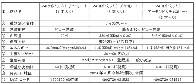 「PARM(パルム)」は、なめらかでコクのあるアイスクリームを口どけのよいチョコでコーティングしたバーアイスです。2005年の発売以来、お客さまに“日常のちょっとした贅沢”を提供してまいりました。リニューアル発売する「PARM(パルム) チョコレート(1本入り/6本入り)」、「PARM(パルム) アーモンド&チョコレート(6本入り)」いずれも、アイスのバニラ感をアップさせ、濃厚なチョコの味わいや香ばしいローストア―モンド入りチョコとの一体感を高めました。
