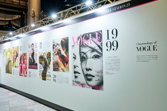 麻布台ヒルズアリーナには、駅舎に見立てた「VOGUE STATION」が2日間限定で出現。VOGUE駅舎を拠点に、過去と現在、そして未来をつなぐ展示やトークセッションなど25周年にちなんだ25のコンテンツが展開されました。