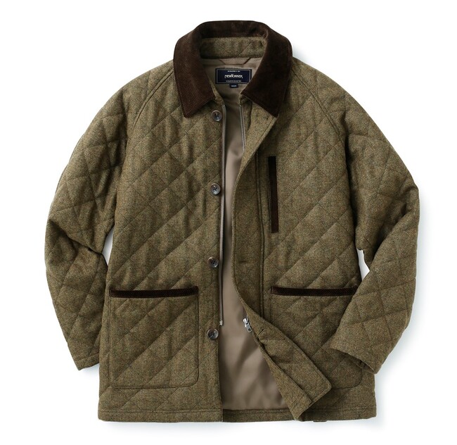 イギリスの「MOON」社の生地を使用したキルティングアウター。ラグランスリーブの着やすさと、ややゆったりとしたシルエットが特徴の ON/OFF 兼用アウターです。カジュアルな“オフスタイル”にはもちろん、英国由来のアイテムは、スーツやジャケット着用の“オンスタイル”にも合わせやすいアイテムです。中綿にはリサイクル原料を使用しており、環境にも配慮したアウターです。