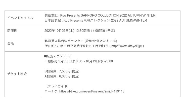 Kuu Presents SAPPORO COLLECTION 2022 AUTUMN/WINTER 開催概要】