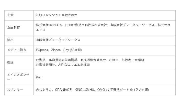 『札幌コレクション』(略称:サツコレ)は、2007年の初開催から今回で17回目を迎えるファッション&カルチャーイベントです。北海道・札幌でアパレルやビューティー業界に関わる地元スタッフを中心に、札幌のマーケット活性化を目的として毎年開催しています。