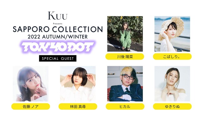 ステージには、YouTubeチャンネル登録者数482万人を誇る大人気クリエイターのヒカル、アパレルブランドのプロデュースも行うなど新たなファッションアイコンとして活躍の幅を広げている大人気インフルエンサーのゆきりぬ、札幌市出身で札幌市制100周年記念事業の公式インフルエンサーも務める佐藤ノア、トレードマークのショートカットとゆるい雰囲気が中高生や大学生の層から支持を集める美容系YouTuberのこばしり。、4人組ガールズグループ「Youplus(ユープラス)」として活動する元フェアリーズの林田真尋と元乃木坂46の川後陽菜といった今をときめくモデルやYouTuber、クリエイターがスペシャルゲストとしてランウェイに登場します。