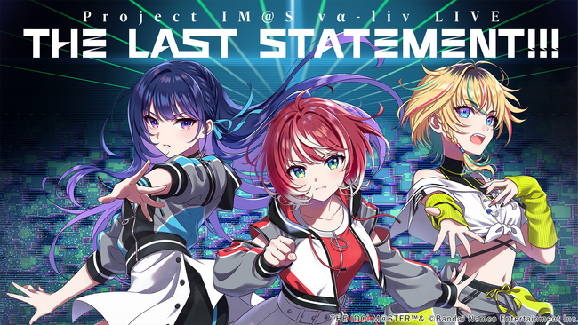 株式会社バンダイナムコエンターテインメントは、「THE IDOLM@STER」シリーズを手掛けるPROJECT IM@Sによる新規アイドルプロジェクト「PROJECT IM@S vα-liv」において、アイドル候補生3名による、初のオンラインLIVE「PROJECT IM@S vα-liv LIVE -THE LAST STATEMENT!!!-」を2024年3月31日(日)にASOBISTAGEにて開催することを発表いたしました。