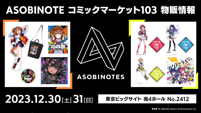 2023年12 月30 日(土)~31 日(日)に開催されるコミックマーケット103(C103) にて「ASOBINOTES」ブースにて販売される関連グッズの詳細も発表されました。