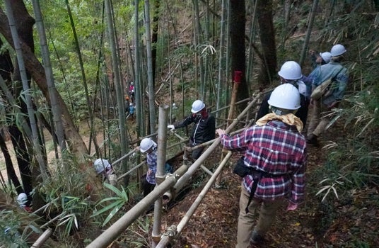 ▲新卒者研修や職員有志、利用者などによる里山と竹林整備