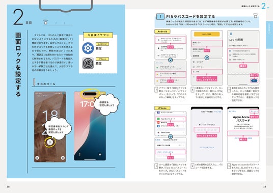 1日ごとにテーマが用意されており、誌面の手順を参照しながら操作をまねて覚えていくだけで、スマホでできることがひとつずつ増えていくので、実力アップを感じながら進めていくことができます。