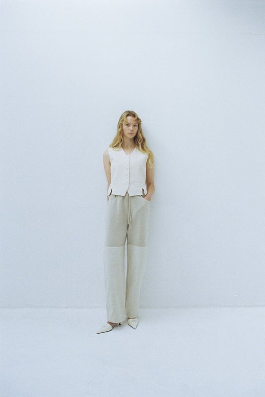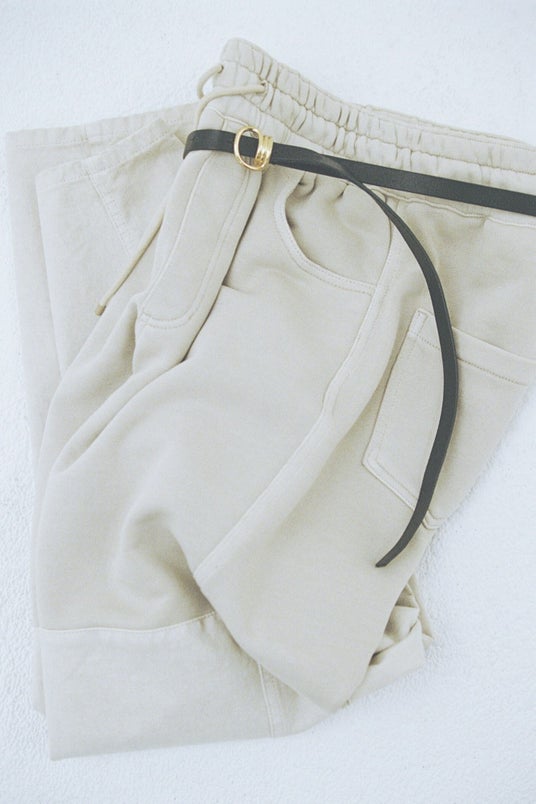 上部は、リラックスウエアの代名詞ともいえるスウェット生地を使用し、ウエスト部分はドローストリングの仕様にすることで快適な履き心地を担保します。