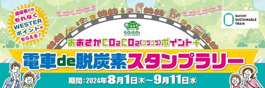 西日本旅客鉄道株式会社(以下、JR西日本)は、本事業に参画し、株式会社ギックスとの協業で、お客様一人あたりのCO2 排出が少なく環境にやさしい鉄道のご利用で WESTER ポイントが付与されるデジタルスタンプラリー『おおさかCO2CO2(コツコツ)ポイント+電車de脱炭素スタンプラリー』を、JR西日本の移動生活ナビアプリ 「WESTER」で 2024 年8 月 1 日(木)から実施します。