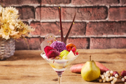 秋を感じさせる見た目と味わいが特徴の限定パフェは、旬の”紫芋”“洋梨”を贅沢に使用し、秋の素材をふんだんに楽しめるパフェをご提供します。