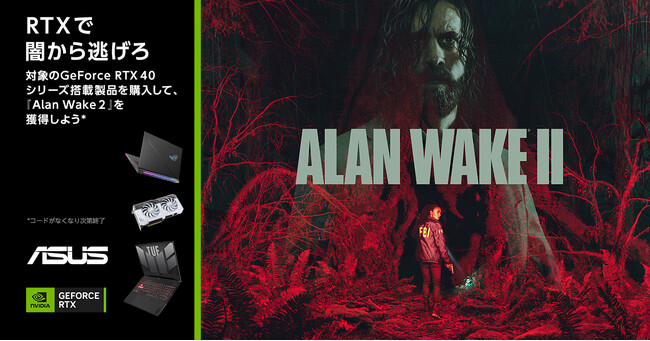 「GEFORCE RTX 40シリーズ搭載のASUS/ROG製品購入で「ALAN WAKE 2」を獲得しよう!」