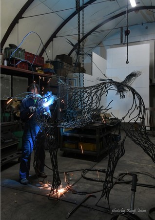 浅井憲一氏は熱した金属を曲げて加工し、躍動感あふれる動物などの立体作品を制作する札幌在住の彫刻家で、「鉄という素材で生命を表現する」ことをテーマに作品を作り続けています。