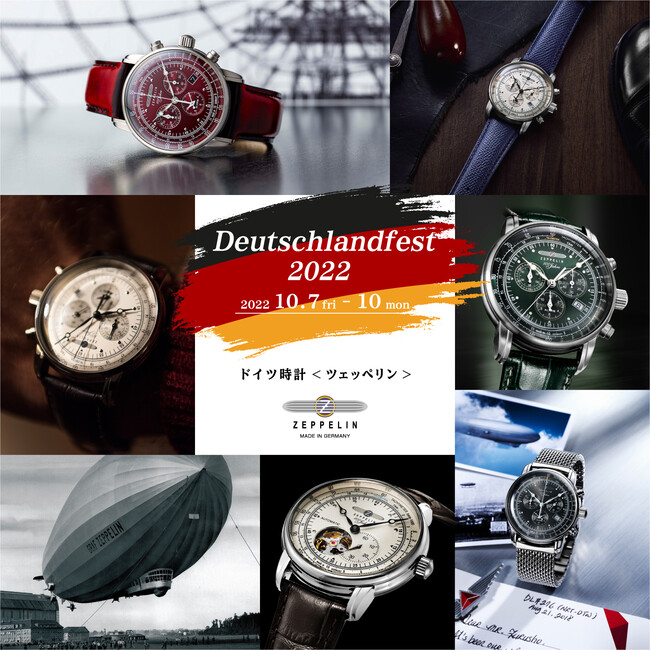 ドイツの飛行船ZEPPELIN号の偉業を現代に伝えるクラシカルな腕時計ブランド『ZEPPELIN(ツェッペリン)』。『ドイツフェスティバル2022』で、人気モデルやレアモデルを多数取り揃え展開します。更にはドイツフェスティバルでしか手に入らない限定モデル2種を特別に販売します。