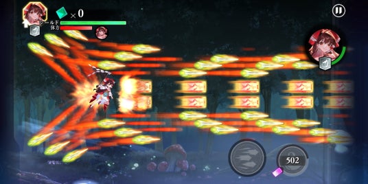 ▲お札&ニードルを発射するショット『ストレンジニードル』。規定回数貫通する効果付き。