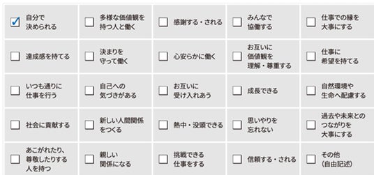 図1. 「あなたが働くうえで大事にしていること、もしくは大事にしたいと思っていることは、どんなことですか。」の選択肢