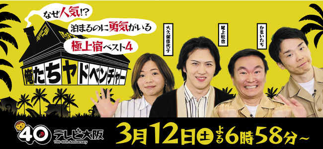 テレビ大阪製作「俺たちヤドベンチャー ~なぜ人気!?泊まるのに勇気がいる極上宿ベスト4~」3月12日(土)夜6時58分~8時54分放送