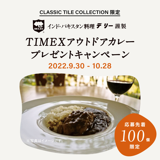 先着100名様限定で「クラシック・タイル コレクション」1本ご購入につき、「デリー×TIMEXアウトドアカレー」を1つプレゼントします。
