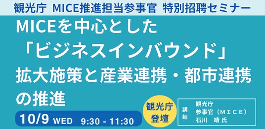 JPI(日本計画研究所)は、観光庁 参事官(MICE) 石川 靖 氏を招聘し、MICEを中心とした「ビジネスインバウンド」拡大施策と産業連携・都市連携の推進について詳説いただくセミナーを開催します。