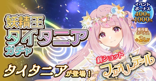 「妖精王タイタニアガチャ」では、メインストーリー「時を刻む妖しき花」に登場する、妖精の国を治める王「タイタニア」が新ショット「フェアリーテール」を持って使い魔として登場します。