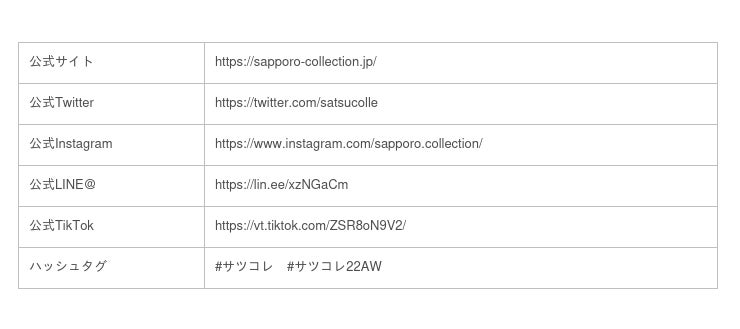 2022年10月29日(土)に北海道立総合体育センター(愛称:北海きたえーる)で開催される北海道最大級のファッションイベント『Kuu Presents SAPPORO COLLECTION 2022 AUTUMN/WINTER(以下サツコレ)』。