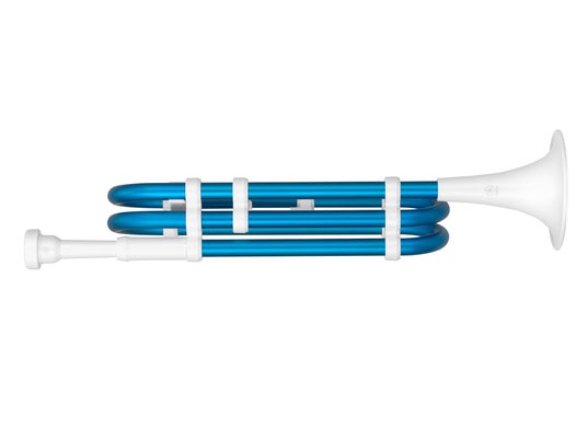 アルミニウムパイプを採用することで大幅な軽量化を実現しました。一般的なトランペットの重量が約1,100gに対し、Trovaは約180gと圧倒的に軽く、小さな子どもに最適です。また、円筒管のみで構成されているためパイプを肉厚にすることができ、耐久性に優れています。一般的なトランペットの管厚が約0.5mmであるのに対し、Trovaは約1.0mmと厚いため、壊れにくく丈夫です。