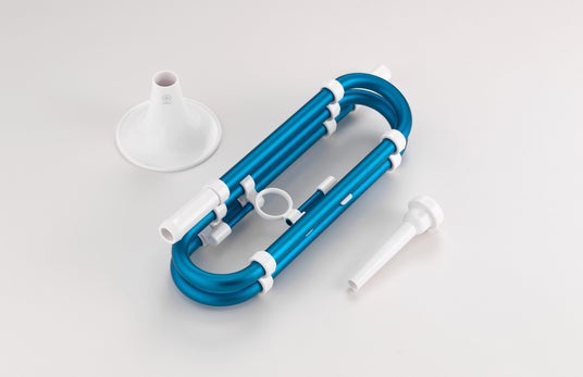 金管楽器と同様に、マウスピースに唇を当てて振動させることで音を出すリップリードの楽器でありながら、バルブシステム(ピストン構造)を省くことで、指づかいの習得が不要となり、手軽に演奏を始められます。音量は通常の金管楽器よりも小さく、ベル部分を取り外すことでさらに音量を抑えることも可能です。また、シンプルな構造のため水洗いができ、お手入れも簡単です。