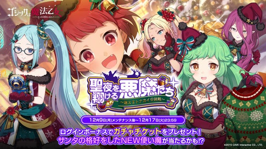 株式会社ケイブ(本社:東京都目黒区、代表取締役社長:秋田英好、証券コード:3760)が配信中のシューティングゲームアプリ『ゴシックは魔法乙女~さっさと契約しなさい!~』(『ごまおつ』)におきまして、12月9日(月)よりクリスマスイベント『聖夜を翔ける悪魔たち~迷えるトナカイの挑戦~』を開始いたしました。