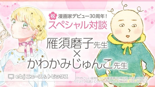 電子書籍販売サイト「ebookjapan」をLINEヤフー株式会社と協力して運営するLINE Digital Frontier株式会社 (本社:東京都品川区、代表取締役社長:高橋将峰) は、電子書籍販売サービス「ebookjapan」(https://ebookjapan.yahoo.co.jp/)の「ebjニュース&トピックス」にて、マンガ家デビュー30周年を迎えられた雁須磨子先生とかわかみじゅんこ先生の対談インタビューを公開します。