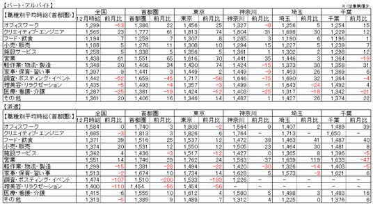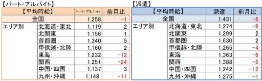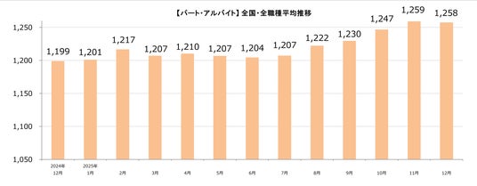 【パート・アルバイト】全国・全職種平均時給は1,258円。前月比ー1円。前年同月比+59円。