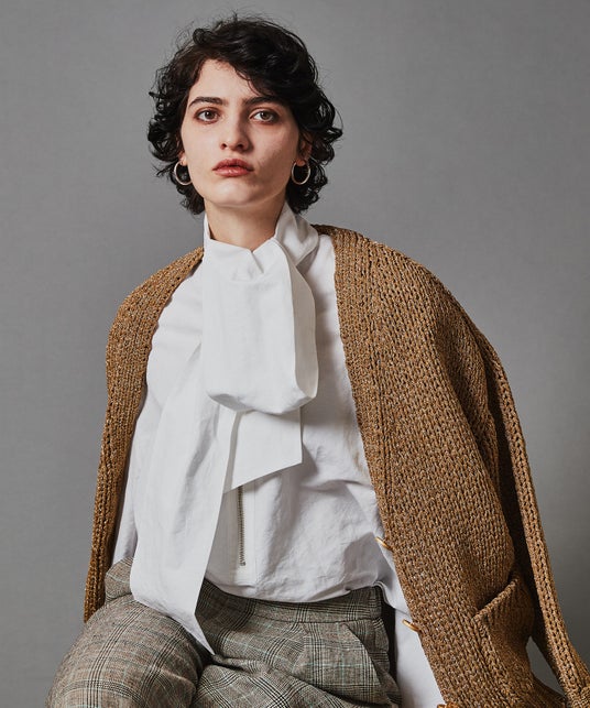 POP UPでは、リネンチェックのセットアップや、シルク100%のニットアンサンブル、イタリアBARBERA社のウーステッド素材を使ったジャンプスーツ、艶やかな光沢のあるラメ・カーディガン、ボリュームのあるボウタイがクラシカルなプルオーバーシャツなど、鮮度あるラインアップを展開いたします。