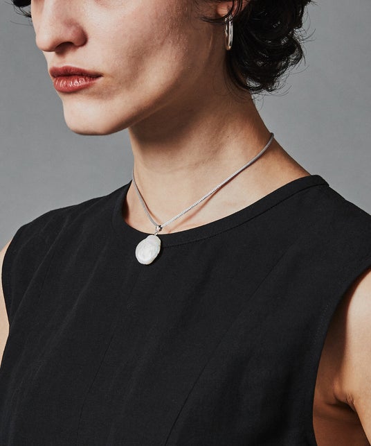 天然素材ならではのひとつひとつ異なるフォルムと、やわらかくなめらかな輝きが魅力を放ちます。サテンコードは自分で結ぶフリータイプの仕様で、長さのアレンジが可能。ネックレスとして、腕に巻き付けてバングルとして、ネックレストップを外してお手持ちのチェーンに通しても、楽しんでいただけます。
