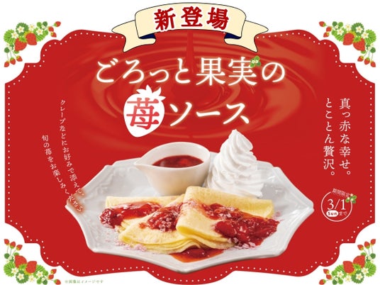 この度、2026年2月9日(月)~ 2026年3月1日(日)の期間限定にて、スイーツコーナーにて『ごろっと果実の苺ソース』が新登場!