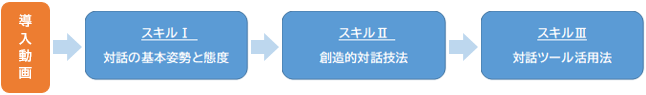 ・各研修(各スキル)の構成は、研修動画2本+実技研修(オンライン)3時間×2日間。