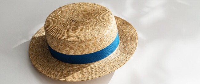かぶった瞬間、爽やかな小麦の香りに包まれるカンカン帽は、涼しさも魅力です。もともと遮熱性と通気性に優れる麦わら帽子ですが、その中でもカンカン帽はクラウンにニスをたっぷり塗っているため、水や汗にも強いという特徴があります。