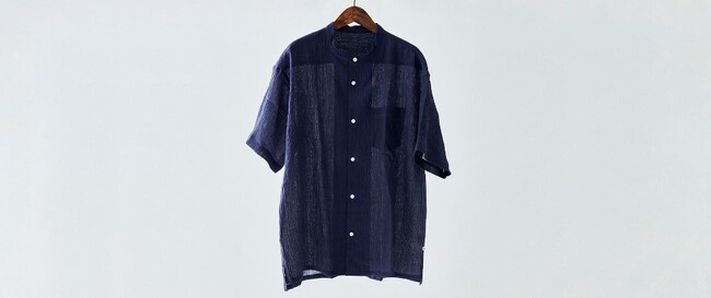 品名:【YAMASHIRO】藤巻百貨店別注 スタンドカラーシャツ(麻100% 京ちぢみ・ネイビー)
