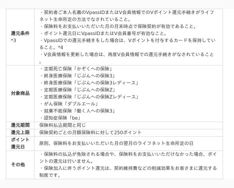 ~V会員でもライフネット生命商品で月額保険料の1%相当のVポイントを還元~