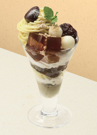 特長:昨年人気の和栗のパフェをリニューアル!愛媛県産の和栗を使用したモンブランクリームの上品でコク深い味わいはそのままに、今年はオリジナルブレンドのコーヒーで仕立てた甘さ控えめのコーヒーゼリーを加えて、味わいのバランスを追求。芳醇で贅沢な味わいをお楽しみください。