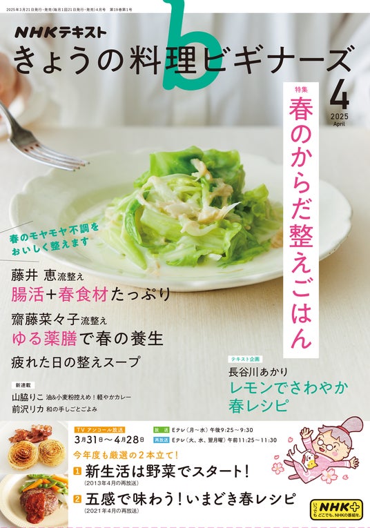 笠原将弘さんや土井善晴さん、和田明日香さんなど人気講師が今年度も登場する『きょうの料理』。4月号は「春野菜」と「卵」レシピを特集。季節の食材を生かした健やかなレシピをお届けします。